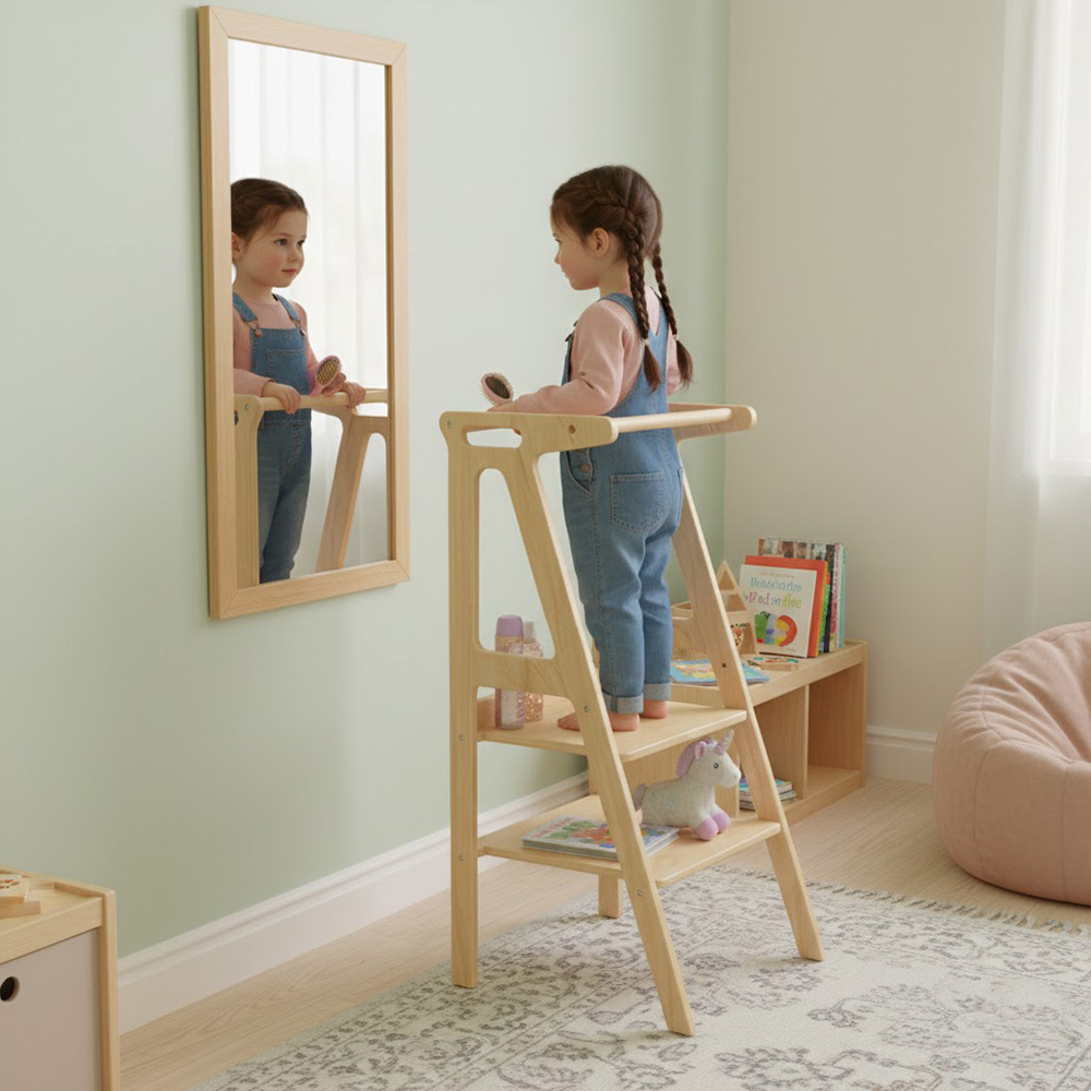 • Learning Towers & Step Stools: Secure, height-adjustable designs that allow children to safely engage in kitchen activities and self-care routines.